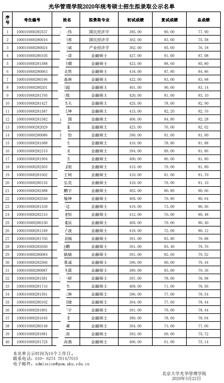 北大考研辅导班:2020年北大光华管理学院硕士招生考研复试拟录取公示名单