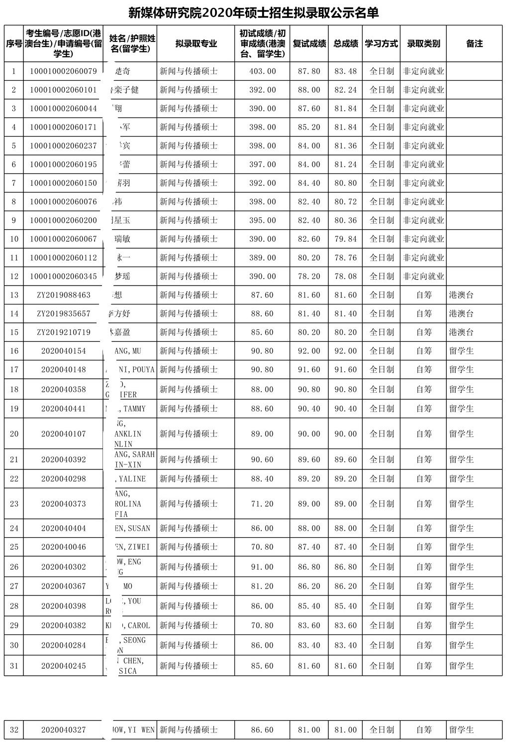 北大考研辅导班:2020年北大新媒体研究院硕士招生考研复试拟录取公示名单