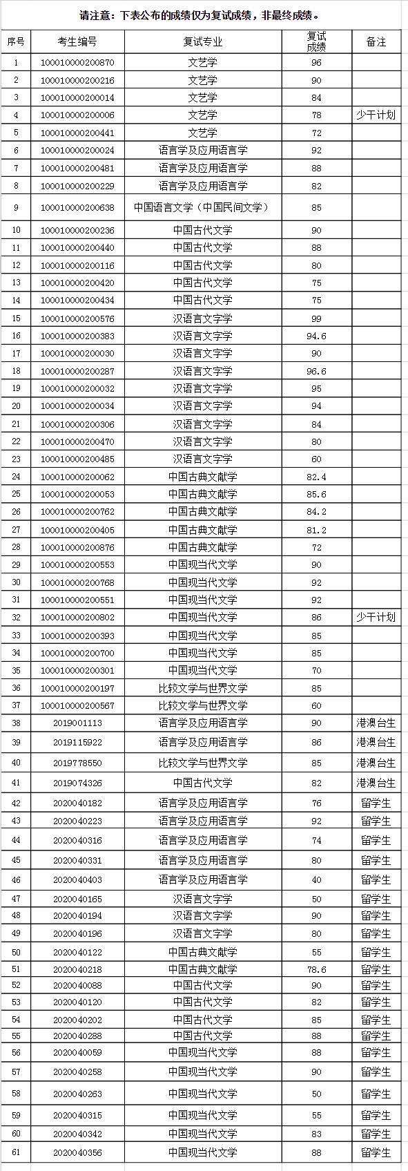 北大考研辅导班:2020年北京大学中文系硕士招生复试成绩公示