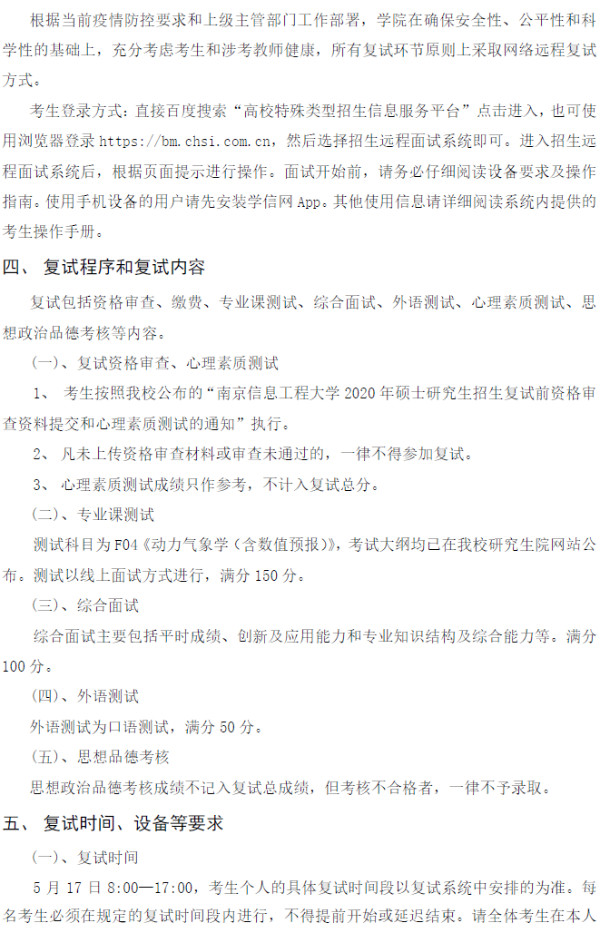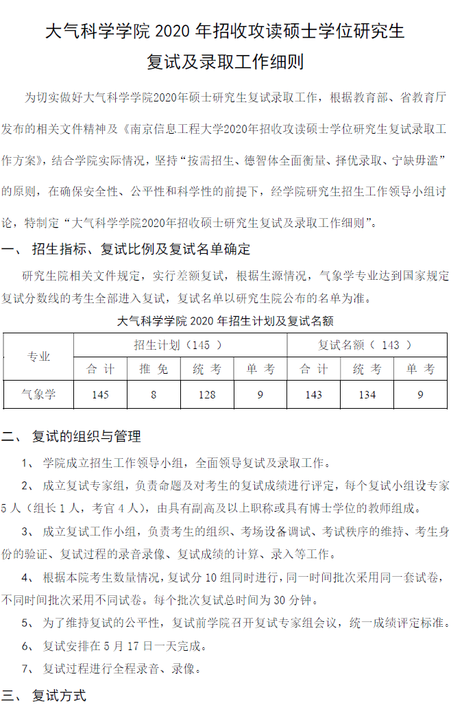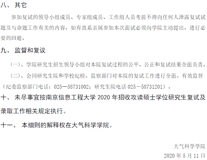 南信大考研辅导班:大气科学学院2020年招收攻读硕士学位研究生复试及录取工作细则