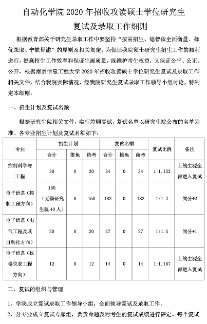 南信大考研辅导班:自动化学院2020年招收攻读硕士学位研究生复试及录取工作细则