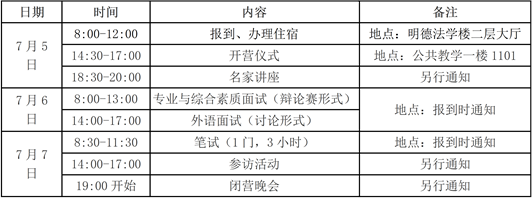 去年人大夏令营报名的截止时间是5月31日,在出章程之前我参考了前一年的报名要求,差别不太大。入营名单公布日比前一年迟了四天左右,在6月21日公布,具体活动时间见表。入营应当是120+,实到121人,优营人数72人,但最后录取在80+,基本上入营就可以录取。