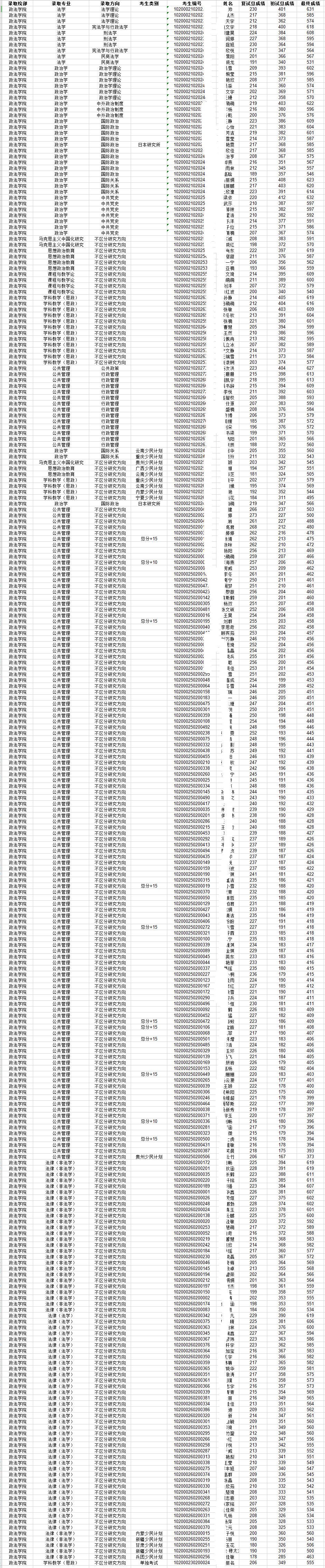 东师大考研辅导班:2020年东北师范大学政法学院硕士研究生拟录取名单公示汇总