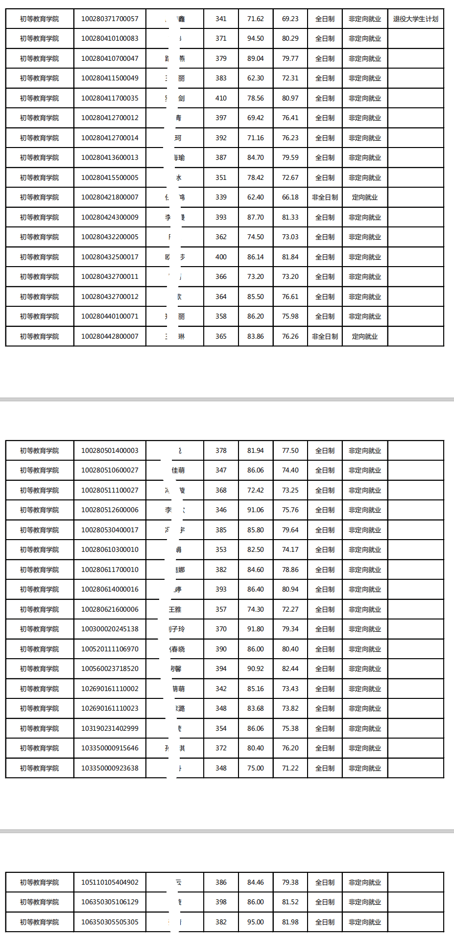 首师大考研辅导班:2020年首都师范大学初等教育学院考研招生复试拟录取名单