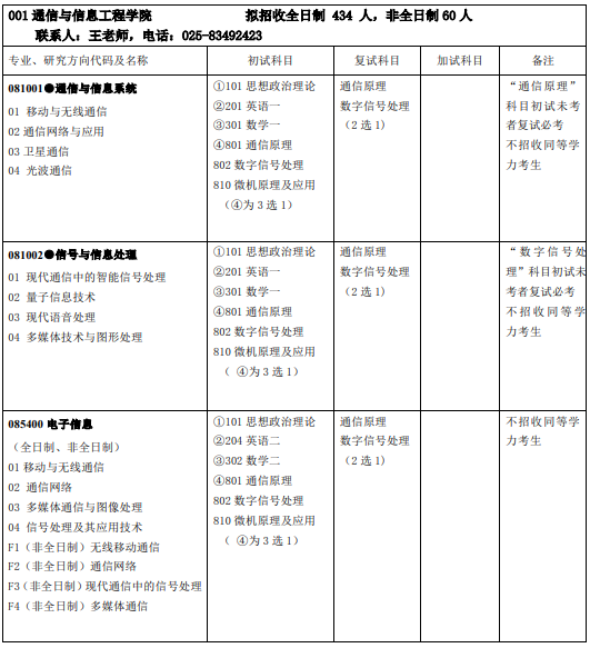 南京邮电大学考研辅导班:南京邮电大学通信与信息工程学院2020招生专业目录