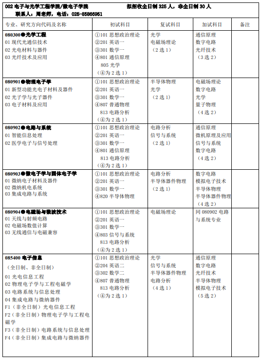 南京邮电大学考研辅导班:南京邮电大学电子与光学工程学院/微电子学院2020招生专业目录