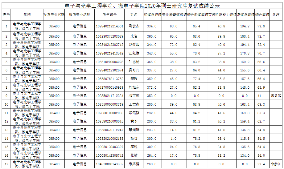 南京邮电大学考研辅导班:电子与光学工程学院、微电子学院2020年硕士研究生复试成绩公示(三)