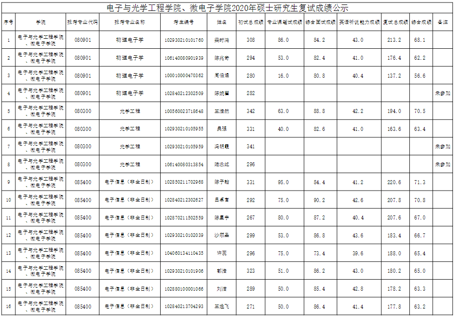 南京邮电大学考研辅导班:电子与光学工程学院、微电子学院2020年硕士研究生复试成绩公示(二)