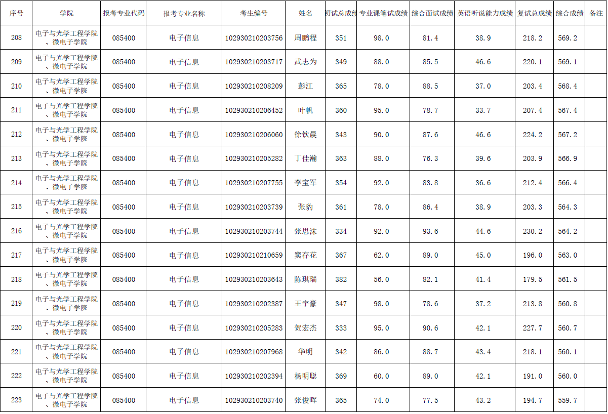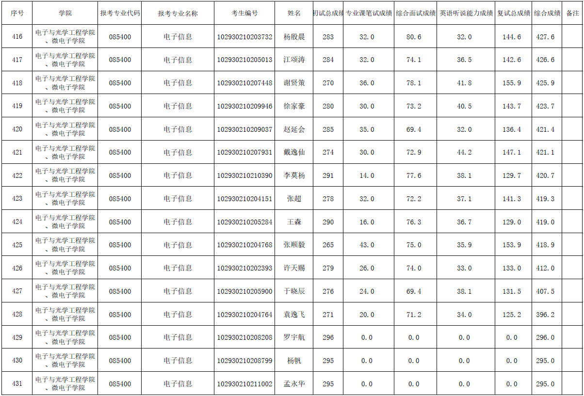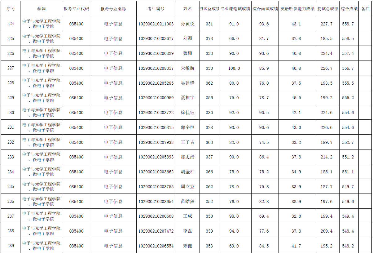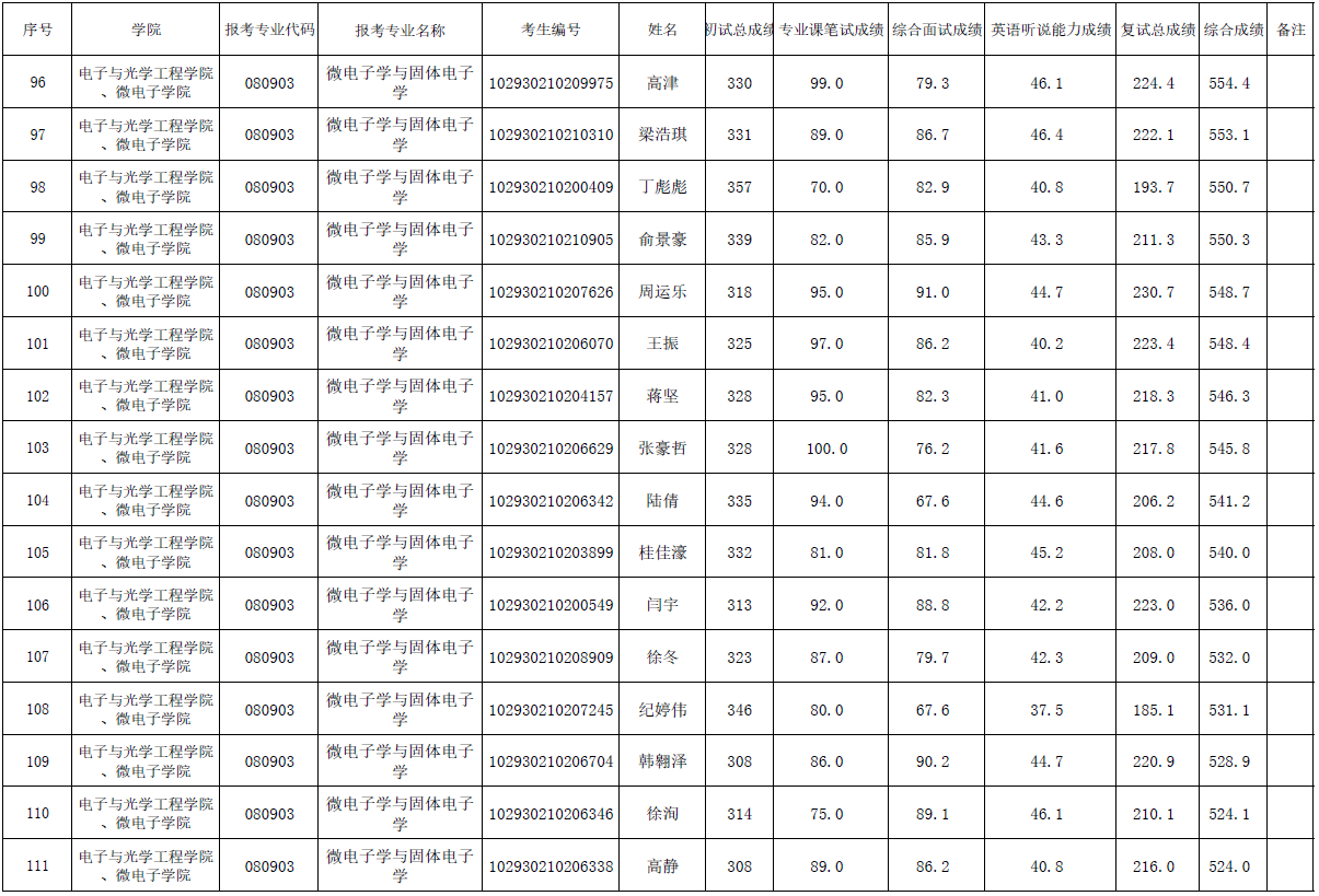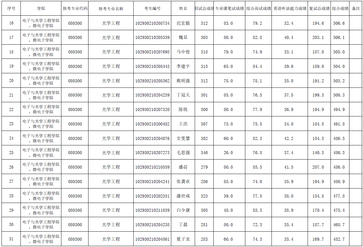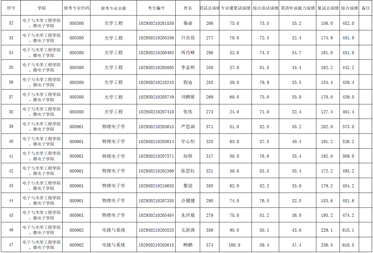南京邮电大学考研辅导班:电子与光学工程学院、微电子学院2020年硕士研究生复试成绩公示