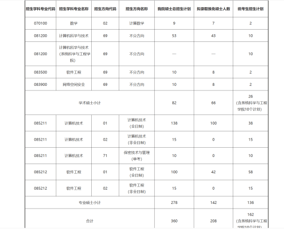 计算机专硕79人扩招为109人,其余专业基本不变。