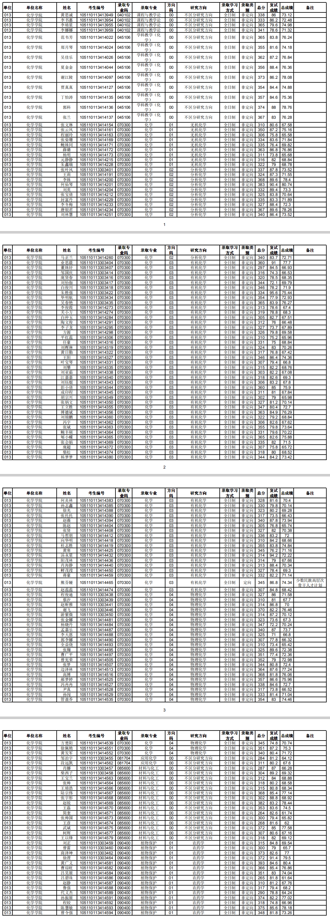华中师范考研辅导班:2020年华中师范大学化学学院硕士研究生拟录取名单