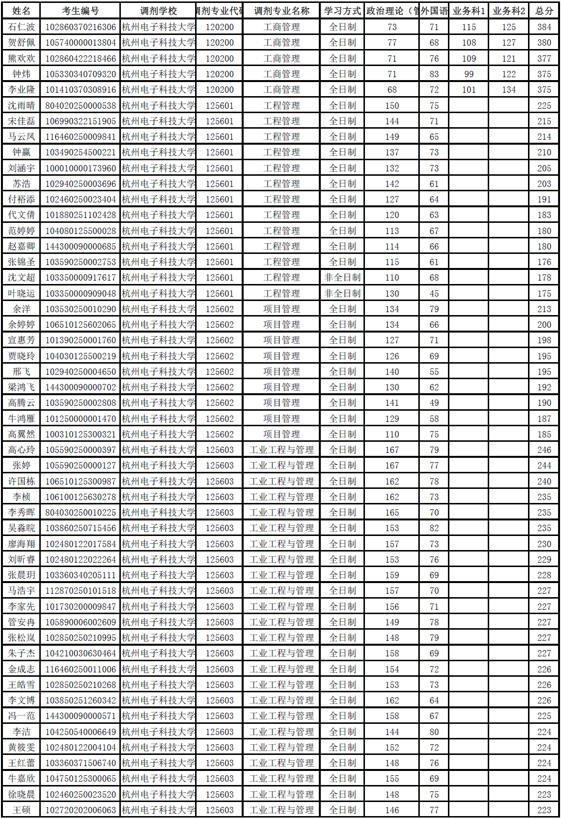 杭州电子科技大学管理学院研究生招生调剂复试名单公布