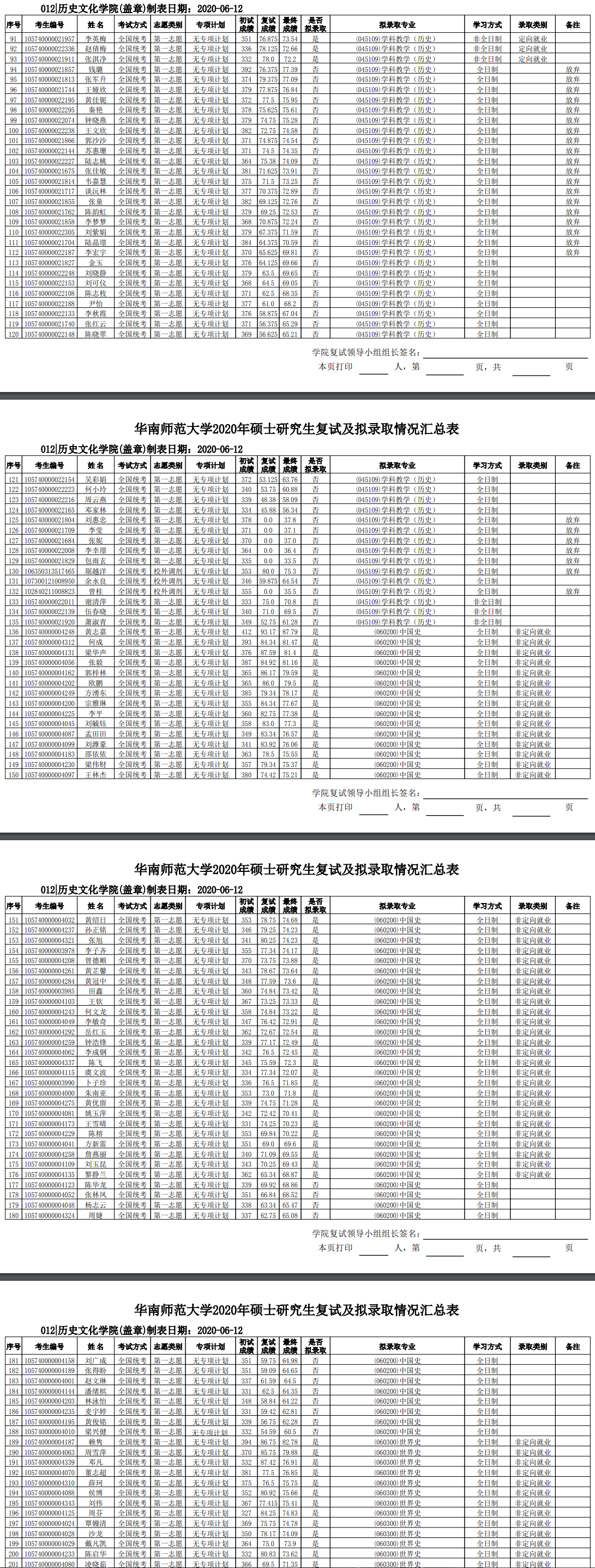 华南师范考研辅导班:2020年华南师范大学历史文化学院硕士研究生考研拟录取名单