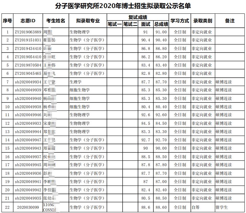 北大考博辅导班:2020年北京大学分子医学研究所博士招生拟录取名单公示