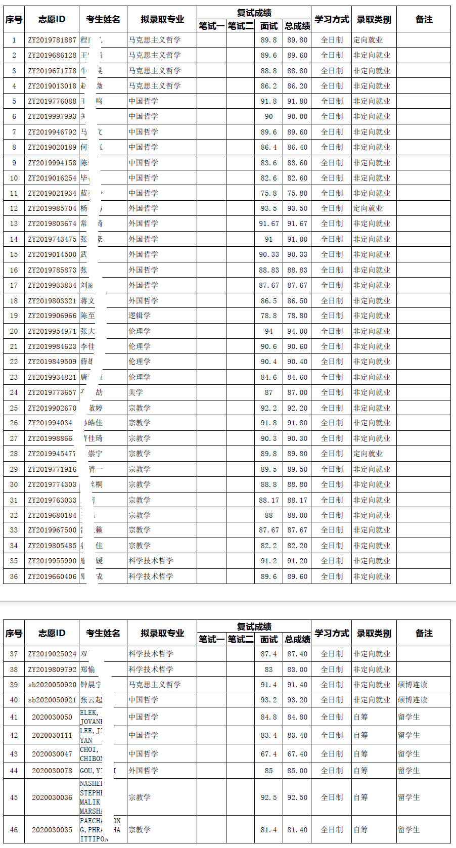 北大考博辅导班:2020年北京大学哲学系及挂靠单位博士招生拟录取公示名单