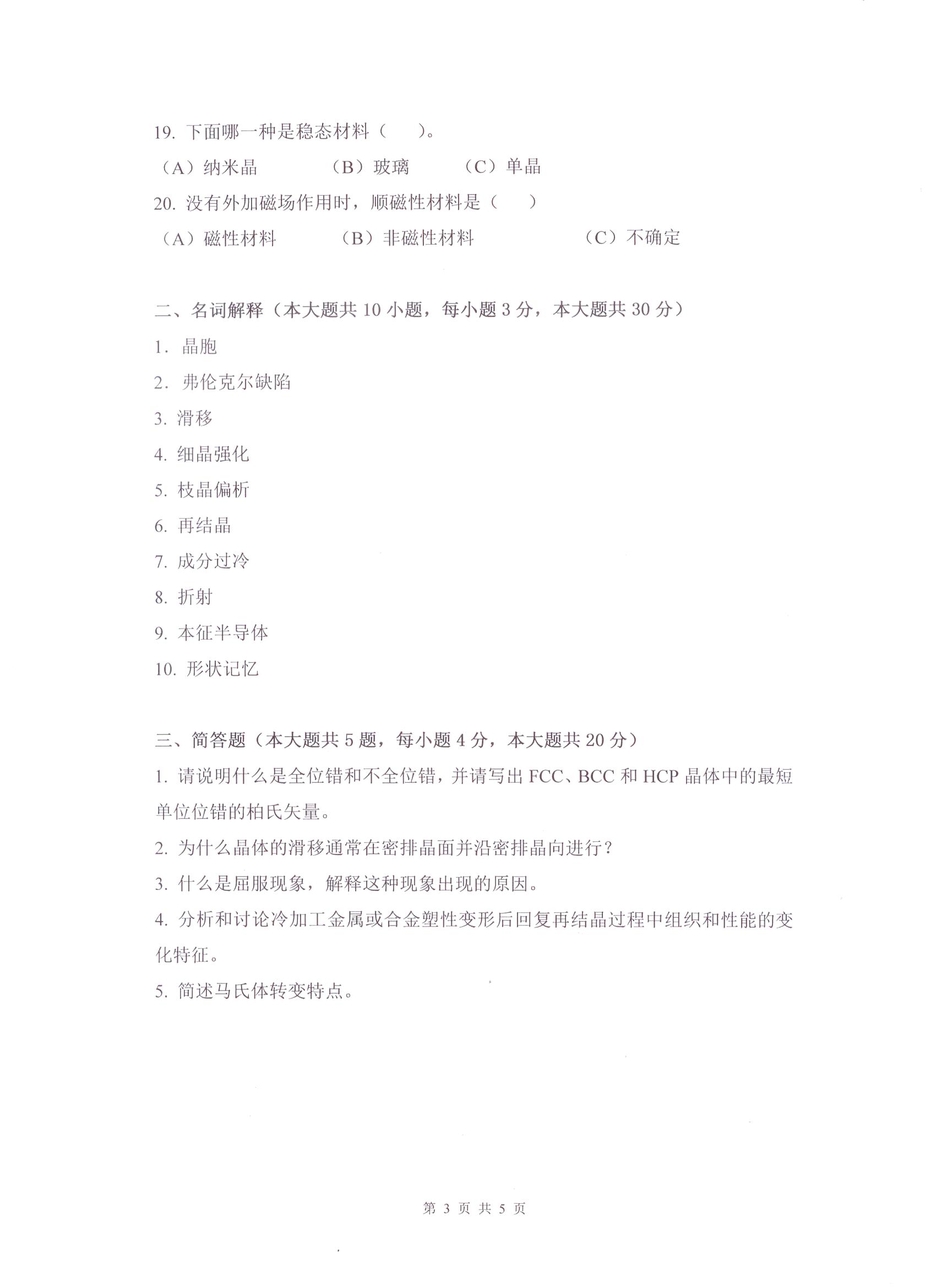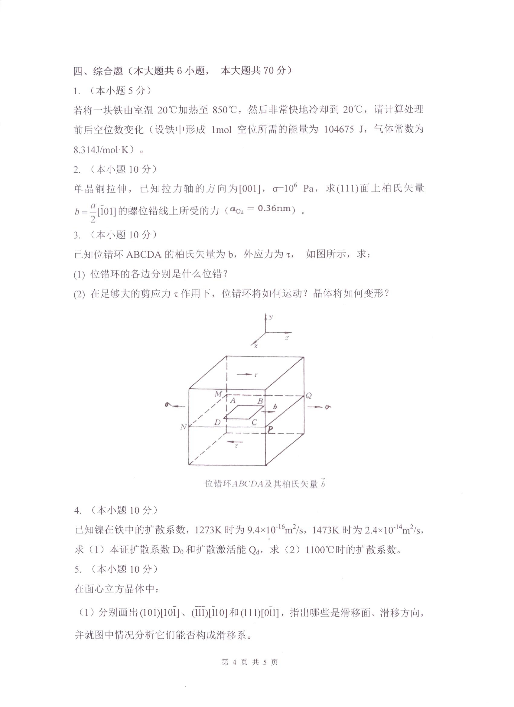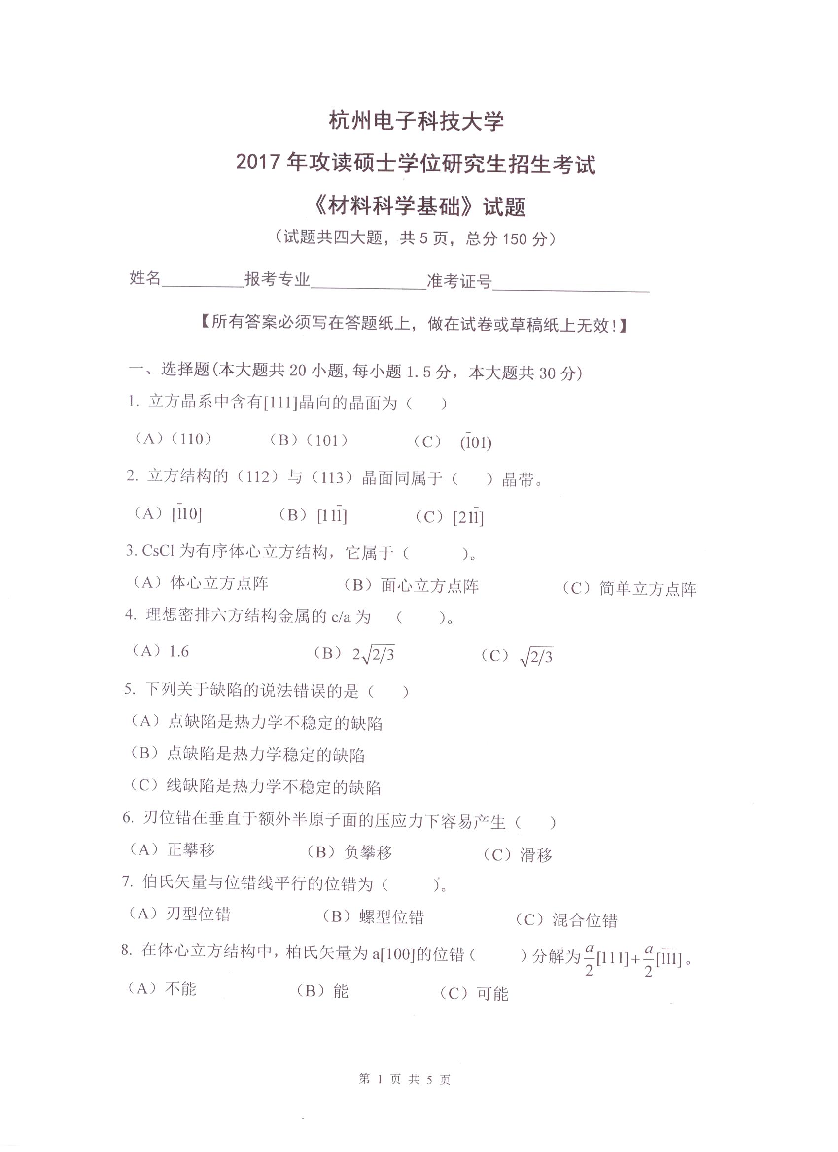 杭州电子科技大学考研辅导班:杭州电子科技大学2017年研究生招生考试材料科学基础科目考试题目