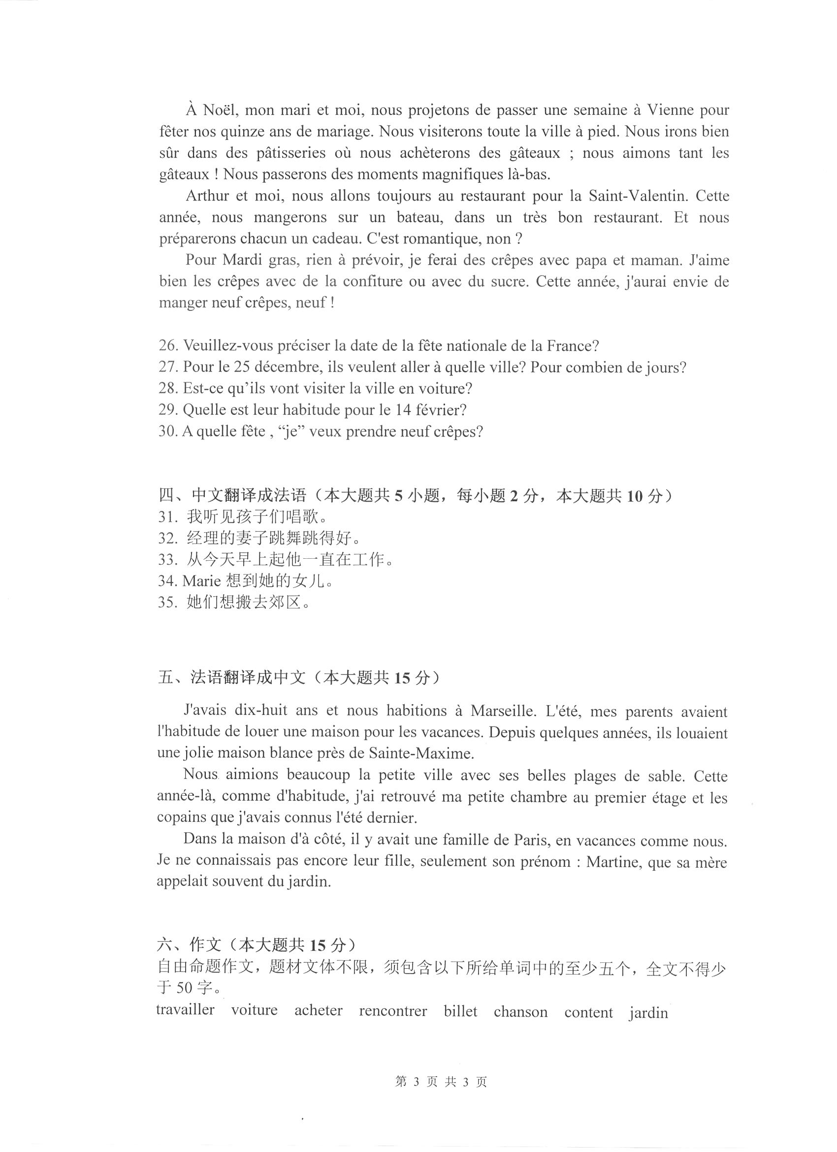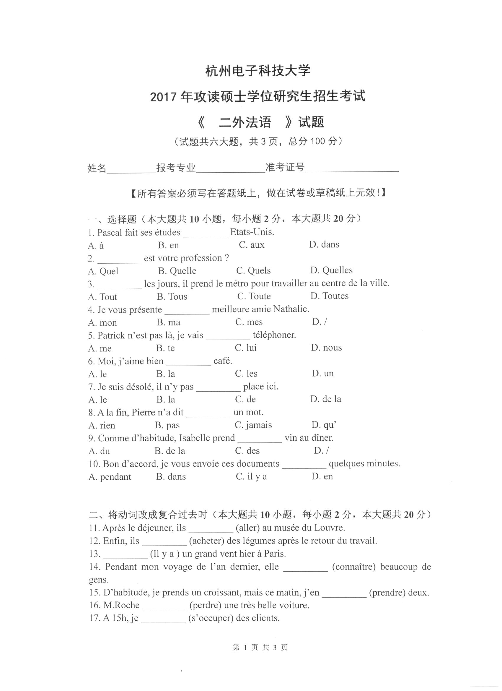杭州电子科技大学考研辅导班:杭州电子科技大学2017年研究生招生考试二外法语科目考试题目