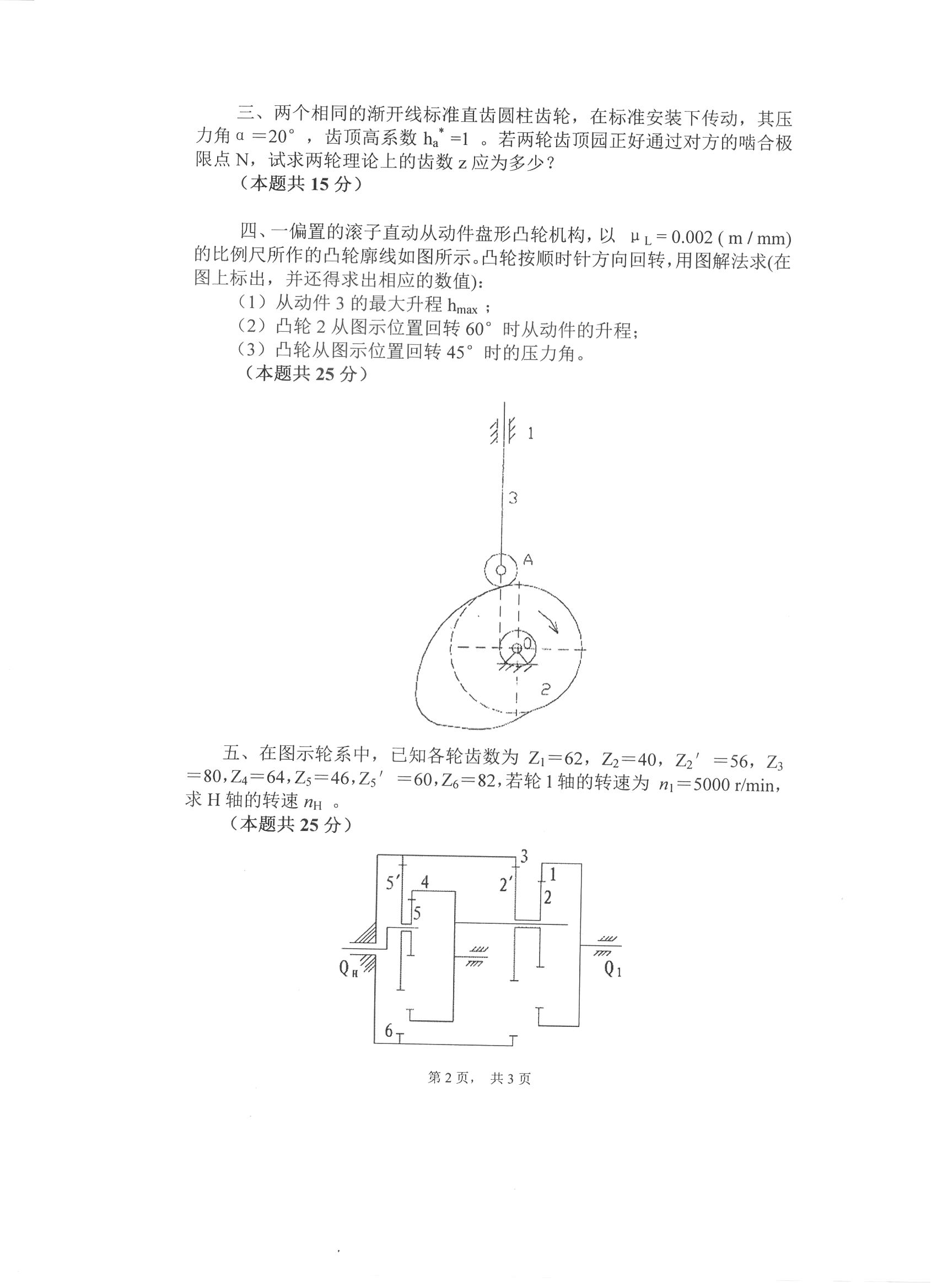 杭州电子科技大学考研辅导班:杭州电子科技大学2017年研究生招生考试机械原理科目考试题目