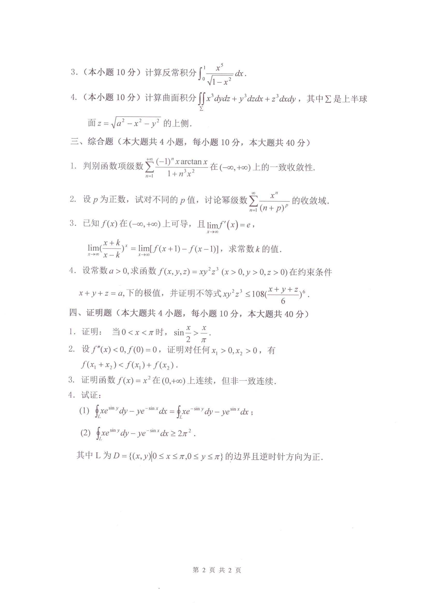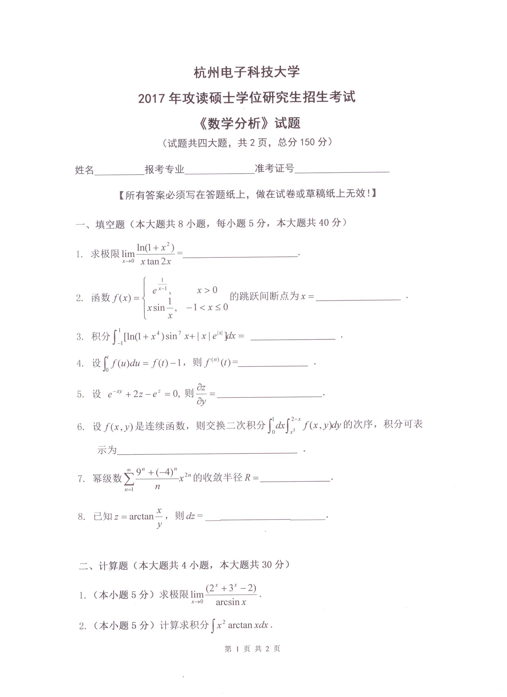 杭州电子科技大学考研辅导班:杭州电子科技大学2017年研究生招生考试数学分析科目考试题目