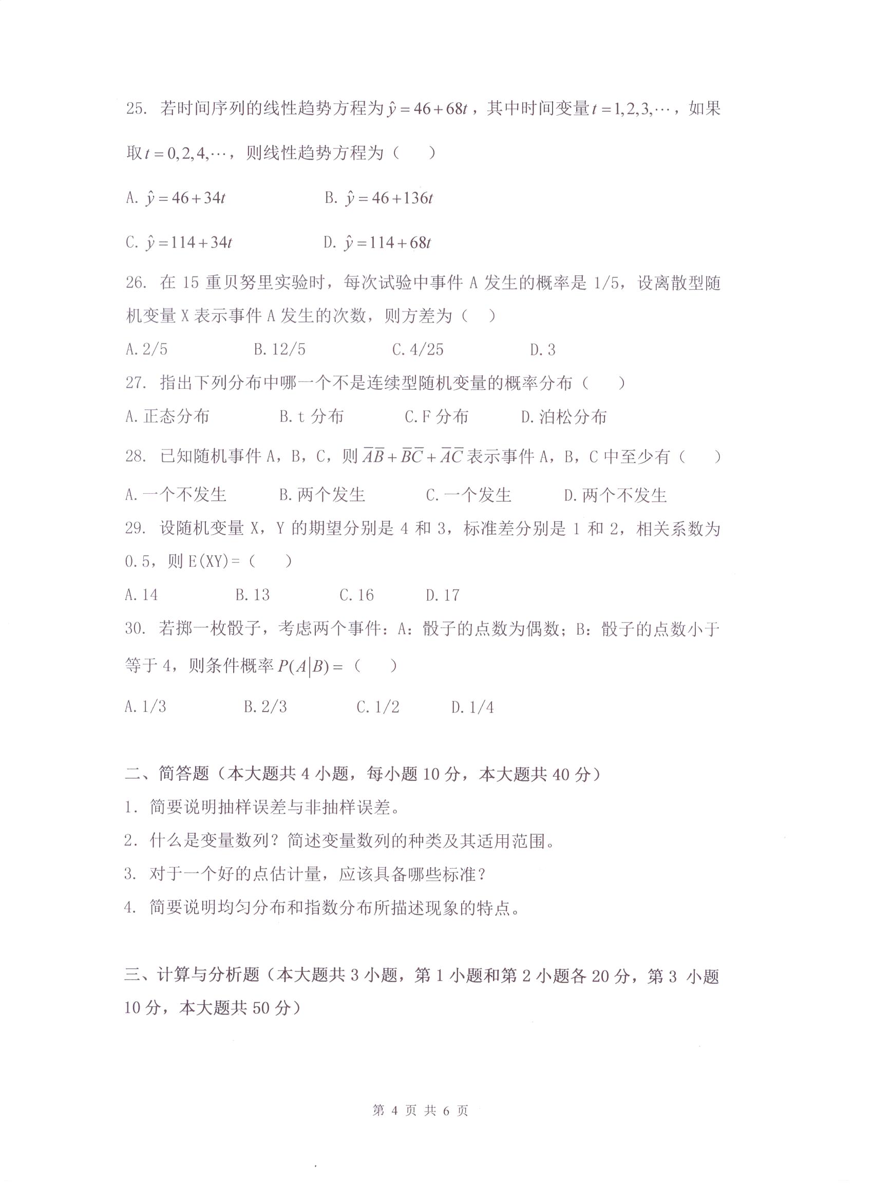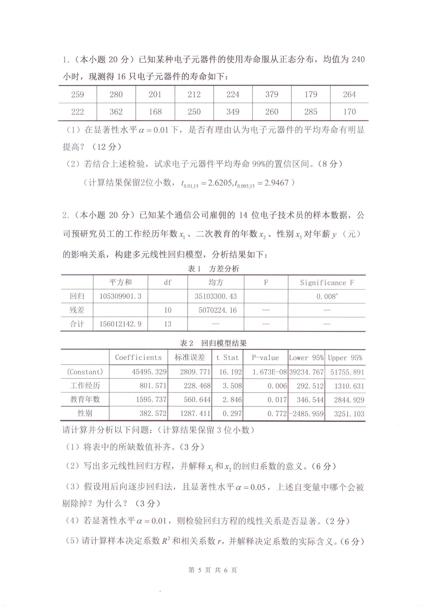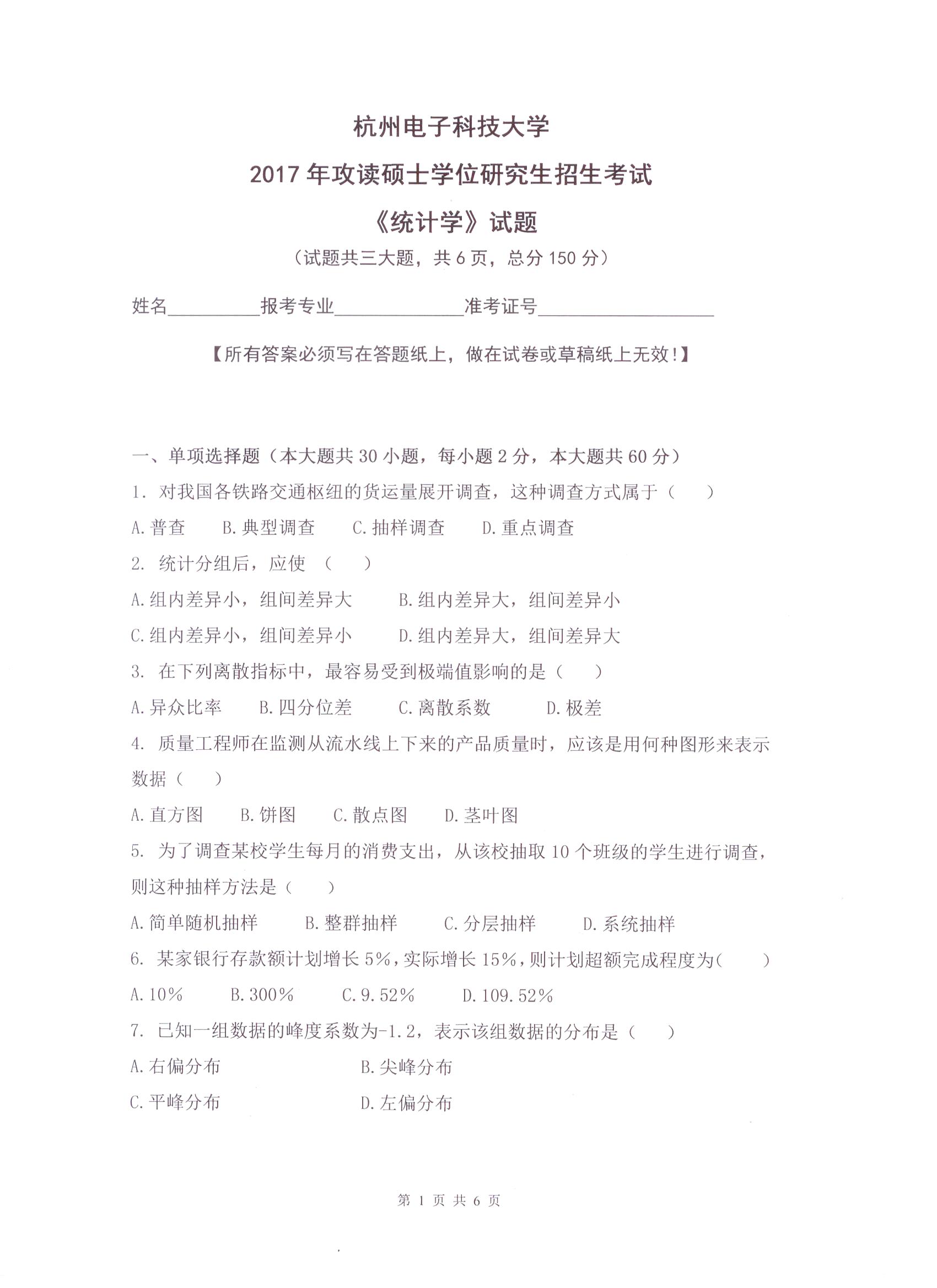 杭州电子科技大学考研辅导班:杭州电子科技大学2017年研究生招生考试统计学科目考试题目