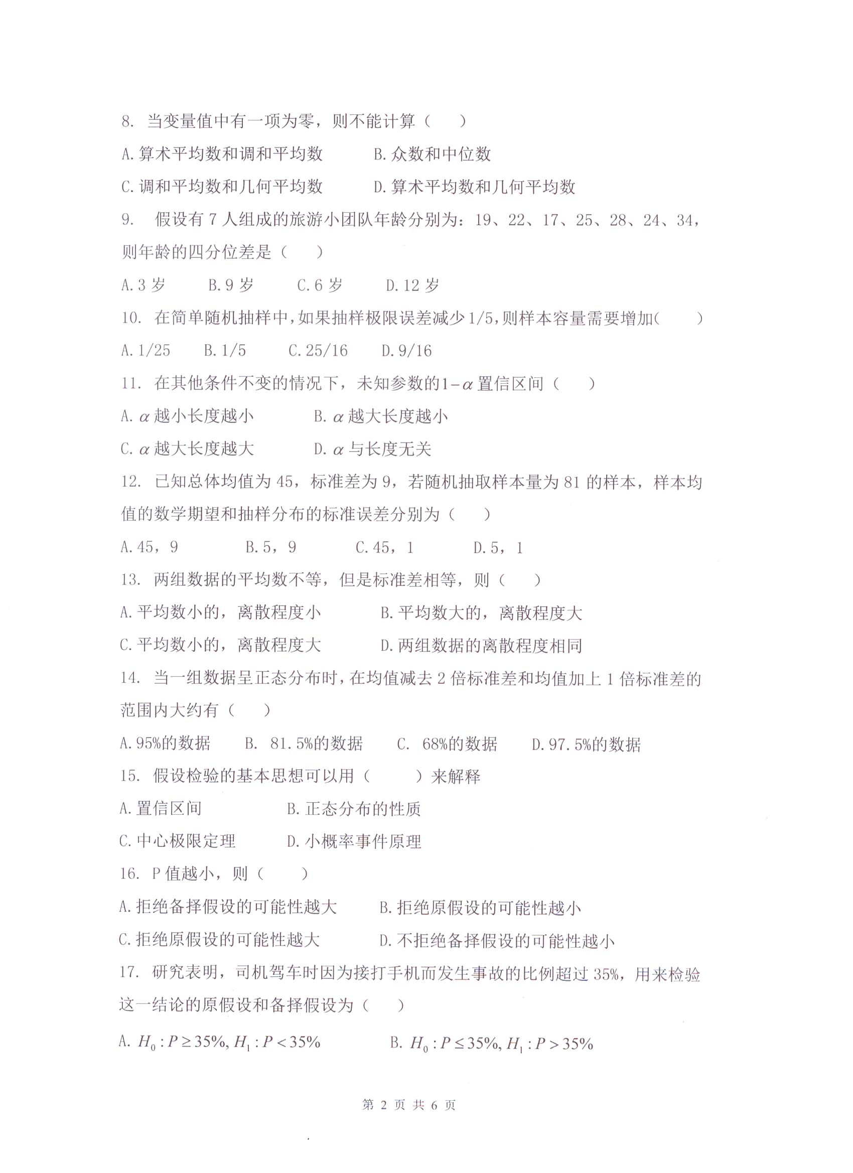 杭州电子科技大学考研辅导班:杭州电子科技大学2017年研究生招生考试统计学综合科目考试题目