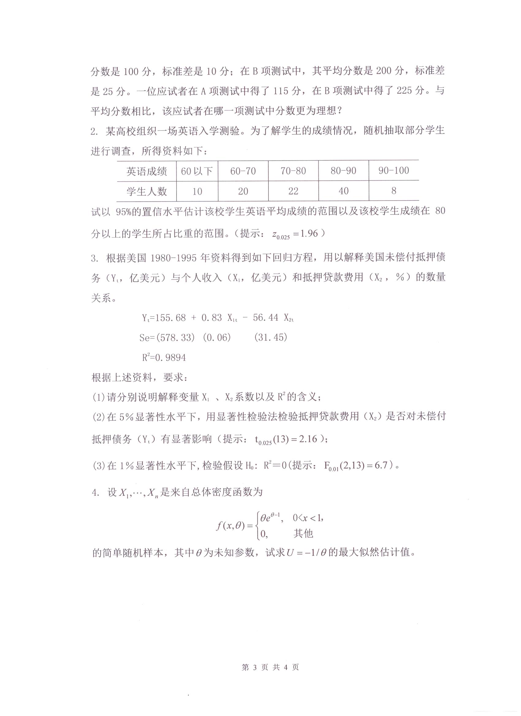 杭州电子科技大学考研辅导班:杭州电子科技大学2017年研究生招生考试统计学科目考试题目