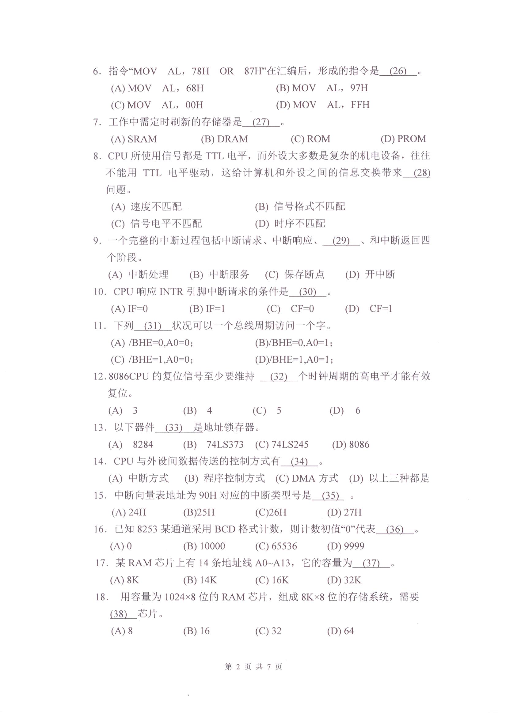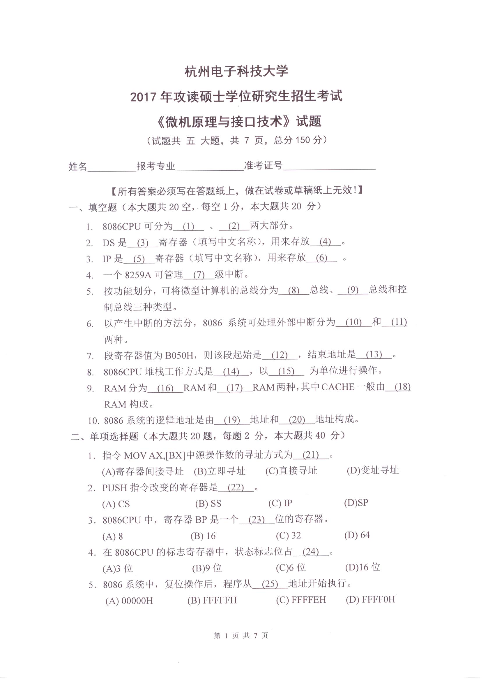 杭州电子科技大学考研辅导班:杭州电子科技大学2017年研究生招生考试微机原理与接口技术科目考试题目