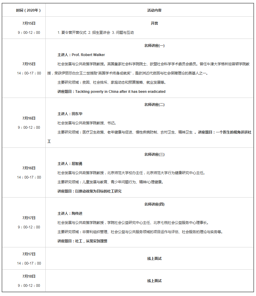 为了增进我院与全国优秀大学生的交流,选拔优秀人才来我院社会工作专业学习深造,我院将于2020年7月15日-18日举办“北京师范大学社会工作硕士(MSW)全国优秀大学生夏令营”。通过夏令营获得预录取资格的学生将成为我院2021年社会工作专业硕士的候选人(即获推免资格者/统考过线者,可优先录取),最终结果将以邮件形式通知。