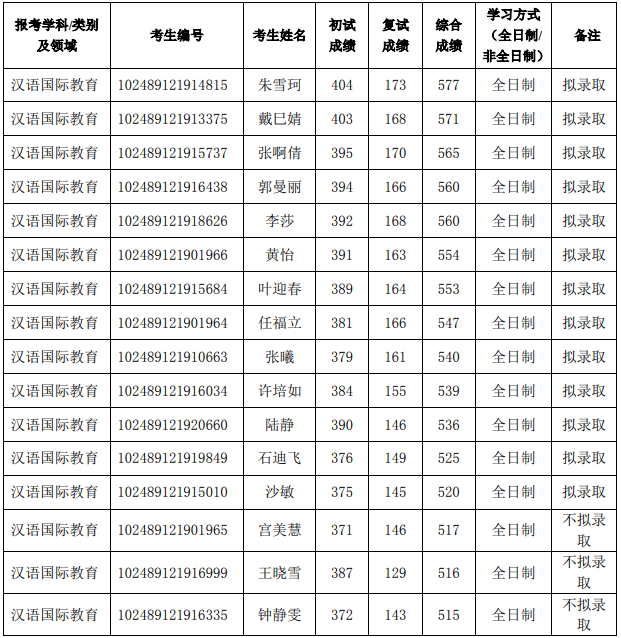 2020年拟录取情况: