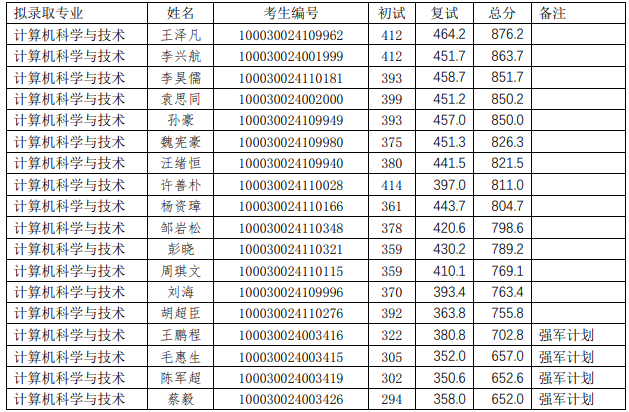 2020 计算机系拟录取硕士研究生名单