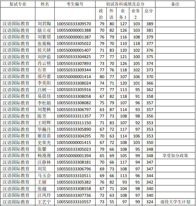 初试科目:①101思想政治理论②201英语一或202俄语或203日语或244法语或245德语③354汉语基础④445汉语国际教育基础