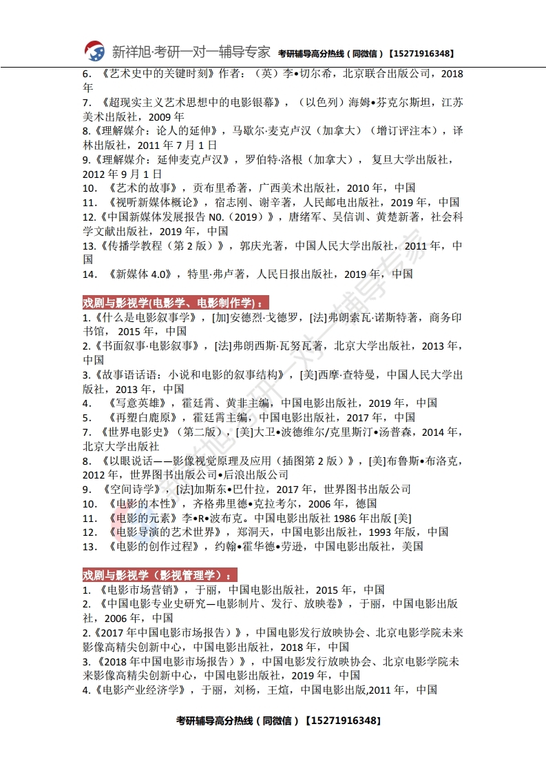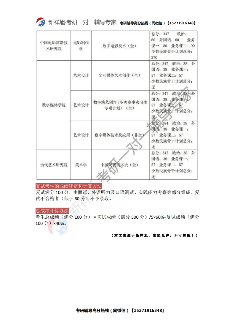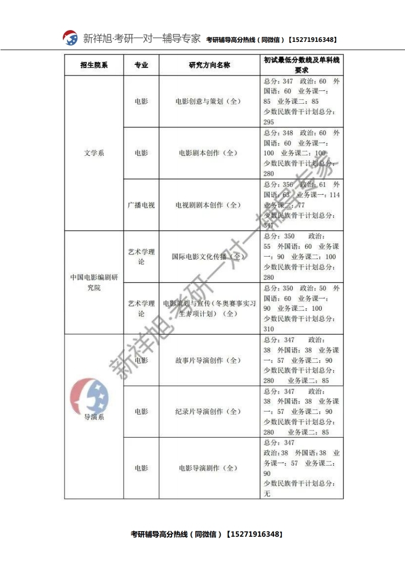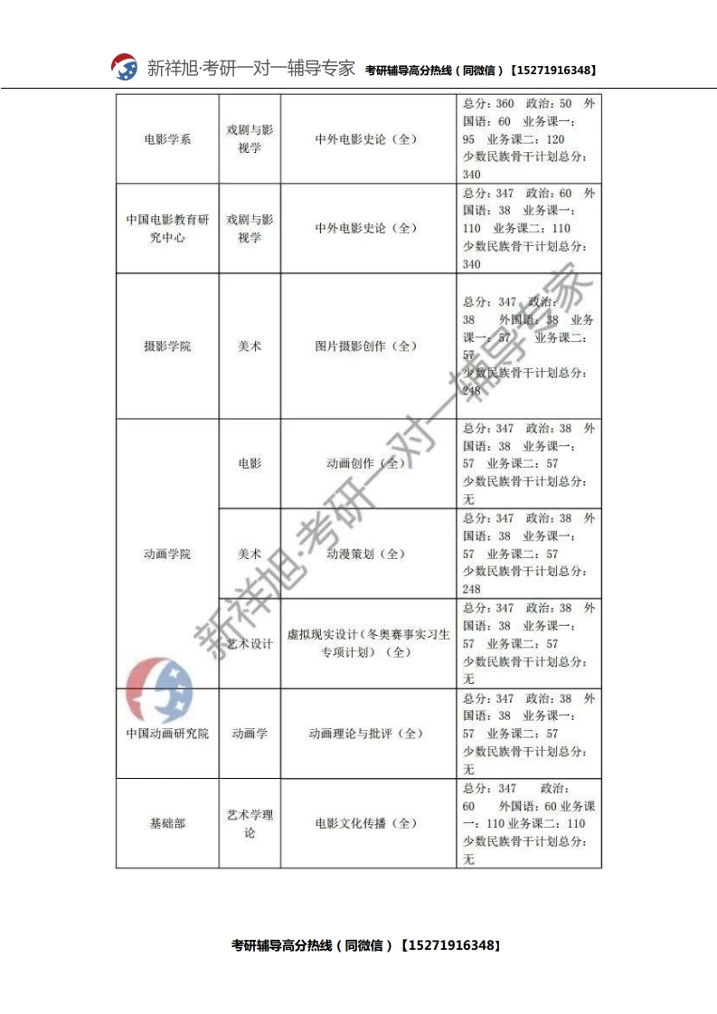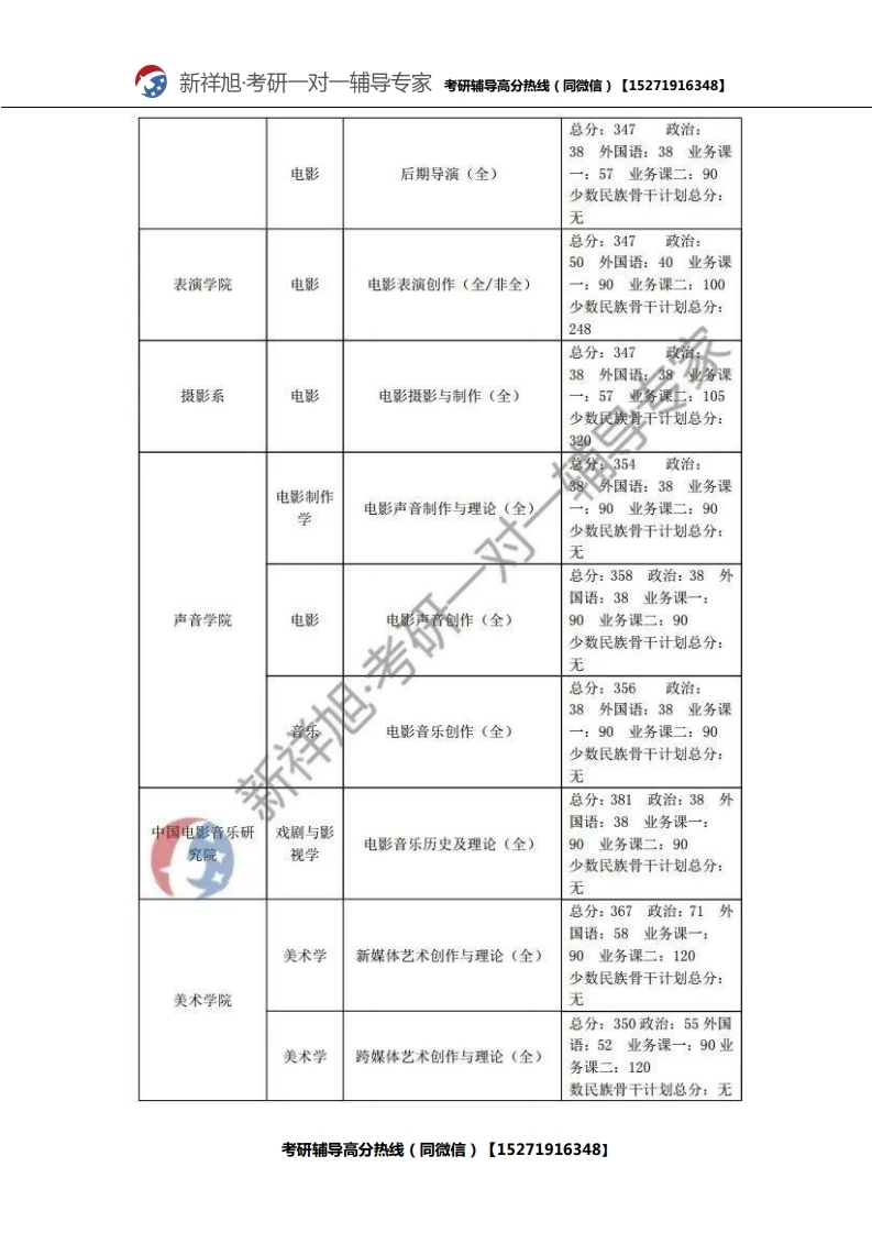 新祥旭考研辅导:2021年北京电影学院研究生考试必看考试科目、参考书目、复试分数