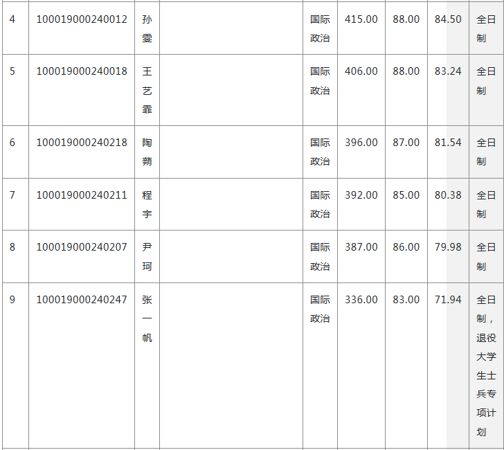 10 100010000240354 曹君国际政治371.00 83.00 76.84 全日制非定向就业 退役大学生士兵专项计划