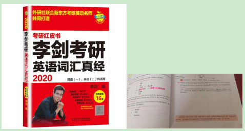 英语词汇量是基础,单词要扎实,做题才能不慌,我推荐李剑的考研英语词汇真经,单词非常全,而且附有不同意思的真题例句,且重点词汇会反复出现,而且每个单元后面还附有一些鼓励的话,这些语句在那些煎熬的日子里就像冬日里的暖阳,温暖前行者的心。李剑老师的折纸法也非常棒,我在9月份买到这本书的时候,每天都会花1个多小时背单词,在考场上,看见每一个单词都认得的时候真的很开心了,以至于有点轻敌了,最后分数没有太高。