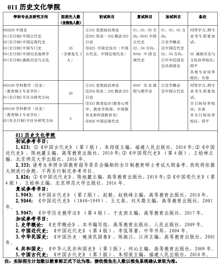 吉师大考研辅导班:吉林师范大学历史文化学院2021年硕士研究生招生目录及参考书目