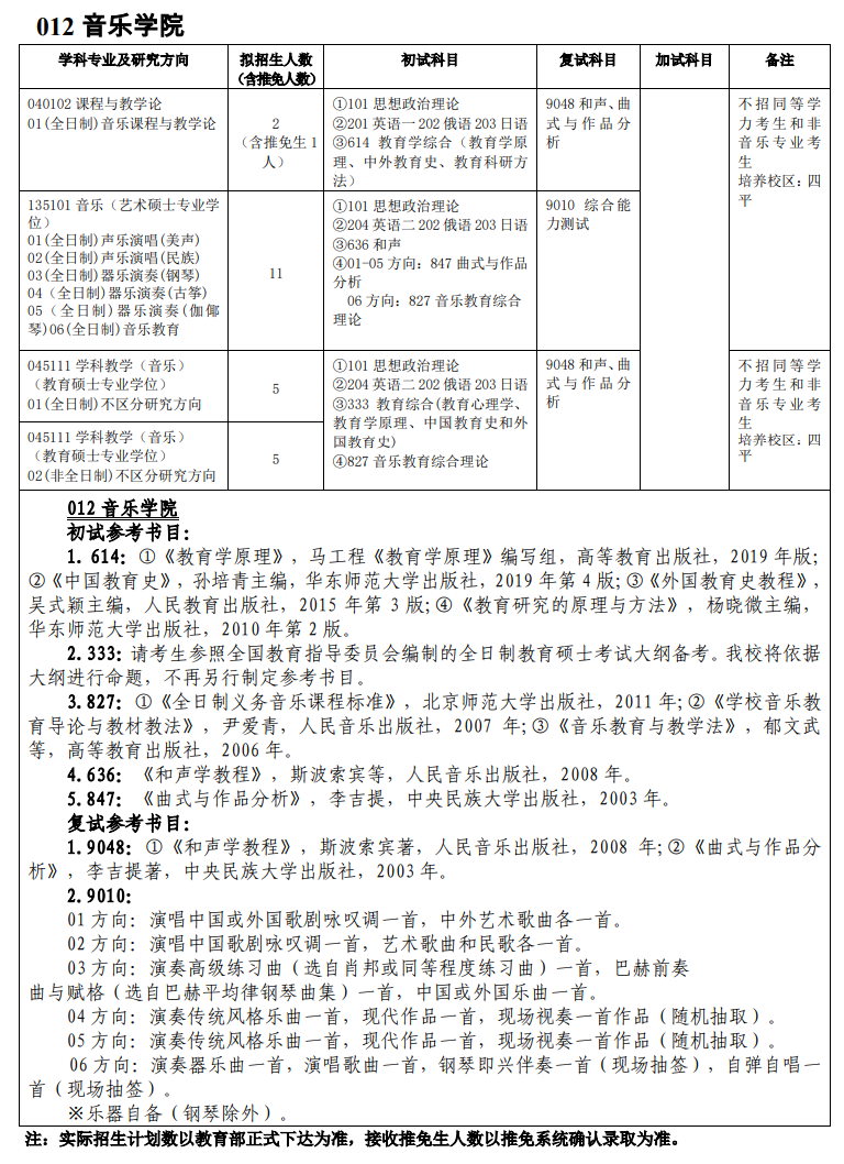 吉师大考研辅导班:吉林师范大学音乐学院2021年硕士研究生招生目录及参考书目