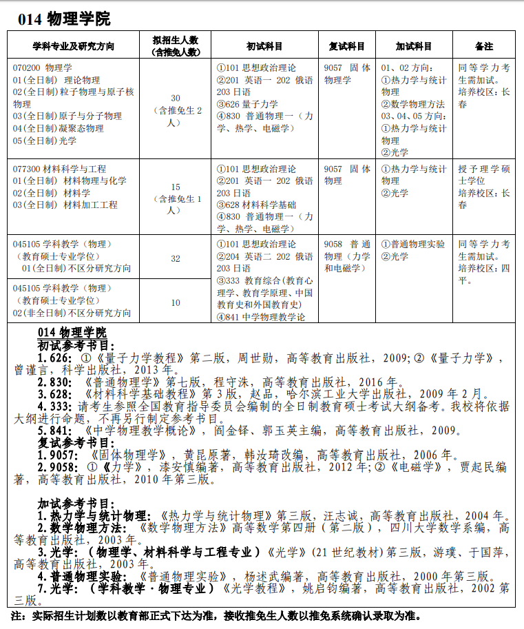 吉师大考研辅导班:吉林师范大学物理学院2021年硕士研究生招生目录及参考书目