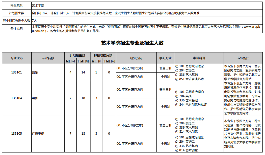 北大考研辅导班:北京大学2021年艺术学院硕士研究生招生专业目录及招生人数公布