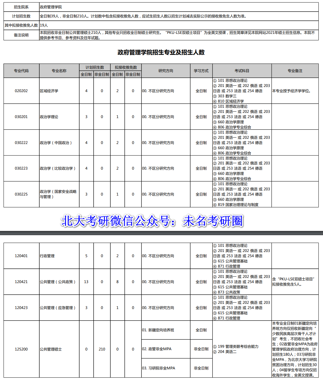 北大考研辅导班:北京大学2021年政府管理学院硕士研究生招生专业目录及招生人数公布
