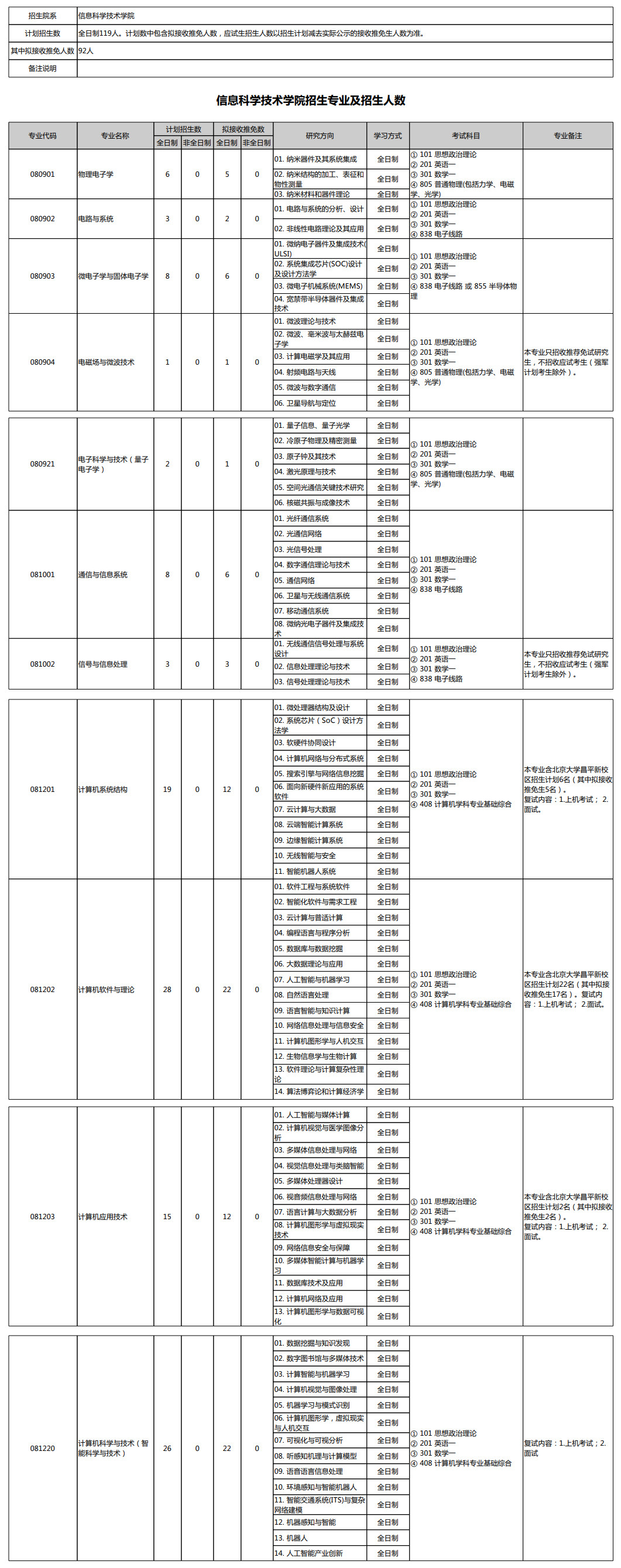 北京大学考研辅导班:2021北京大学信息科学技术学院招生专业及招生人数