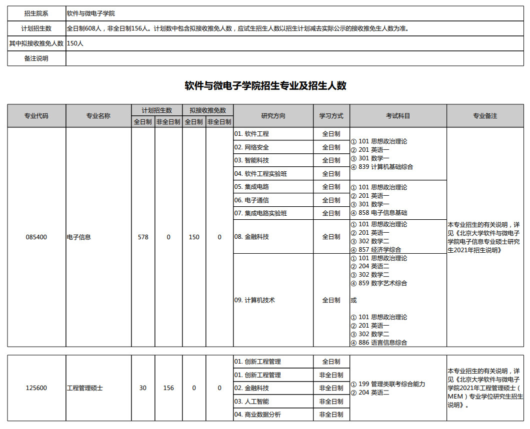 北京大学考研辅导班:2021北京大学软件与微电子学院招生专业及招生人数