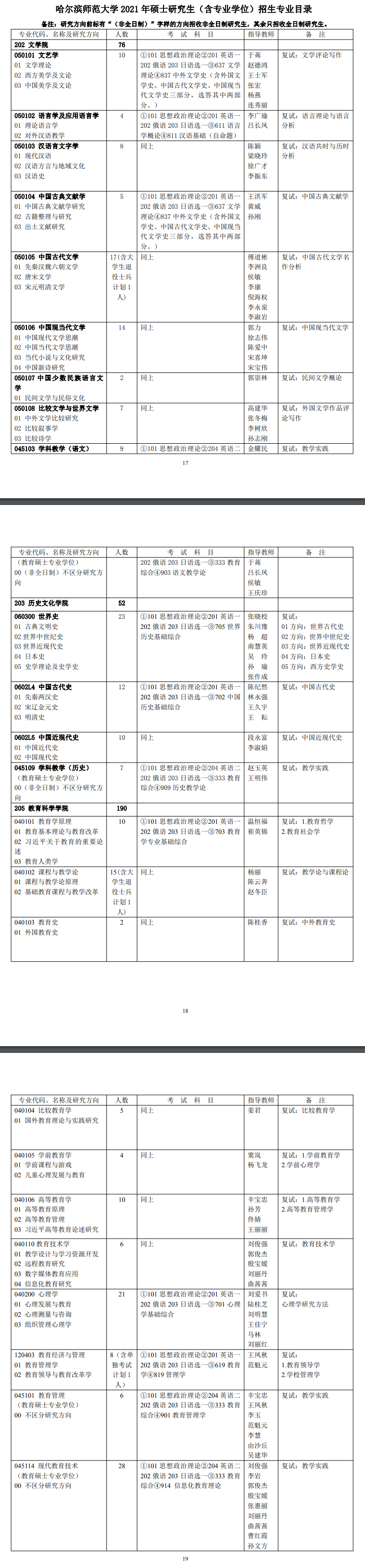 哈师大考研辅导班:哈尔滨师范大学2021年硕士研究生招生专业目录、招生人数公布