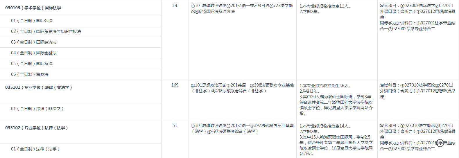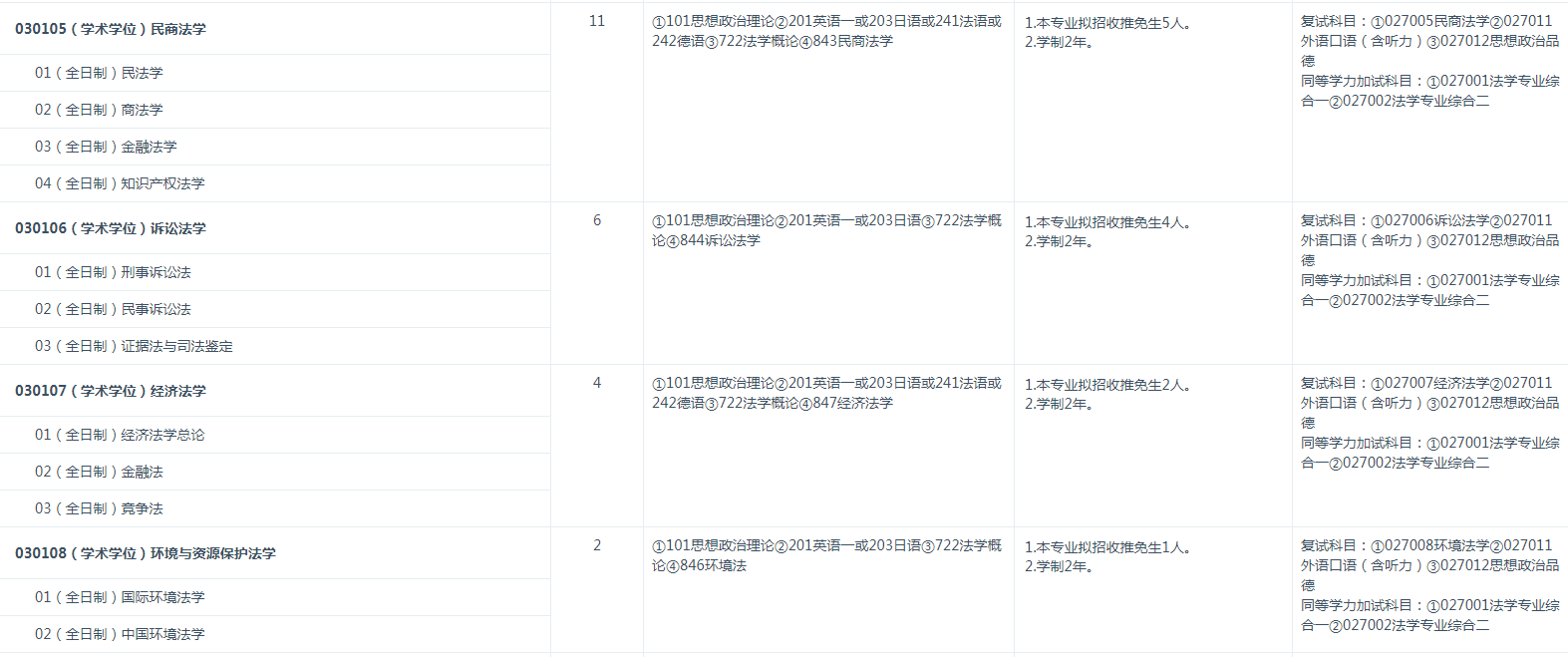 (2)报考前所学专业为法学专业〔仅普通高等学校本科专业目录法学门类中的法学类专业[代码为 0301]毕业生、专科层次法学类毕业生和自学考试形式的法学类毕业生等可以报考〕。以同等学力身份报考者所修读的本科课程应为法学类专业。
