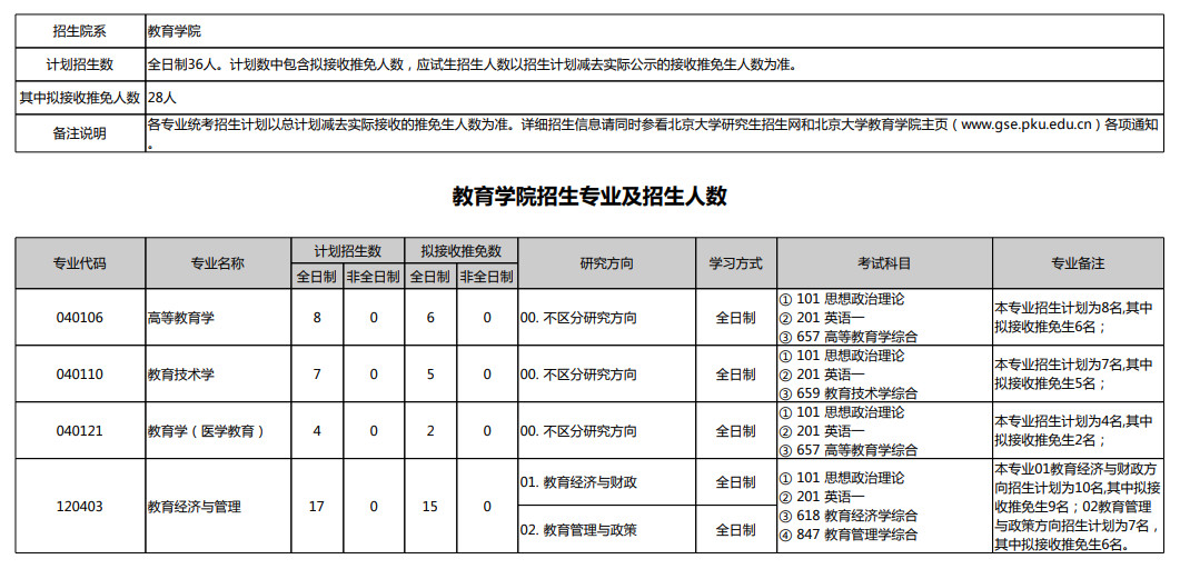 北京大学考研辅导班:2021北京大学教育学院考研招生专业及招生人数