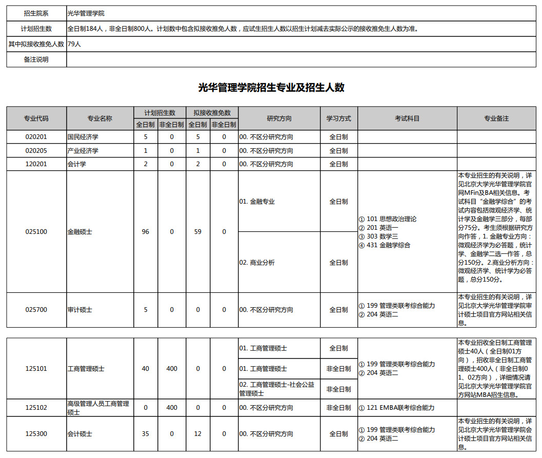 北京大学考研辅导班:2021北京大学光华管理学院考研招生专业及招生人数