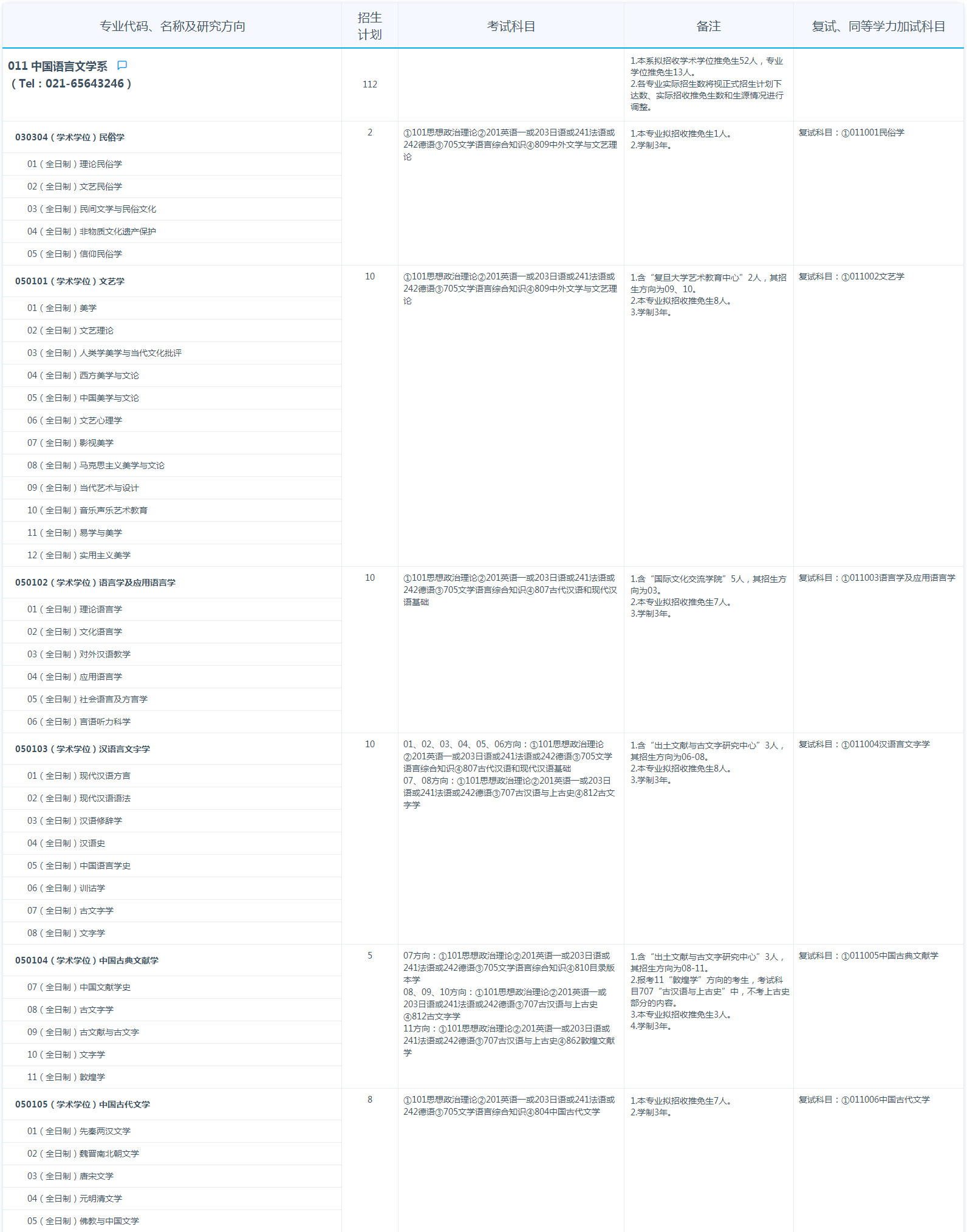复旦大学考研辅导班:2021复旦大学中国语言文学系考研招生目录、招生人数、考试科目