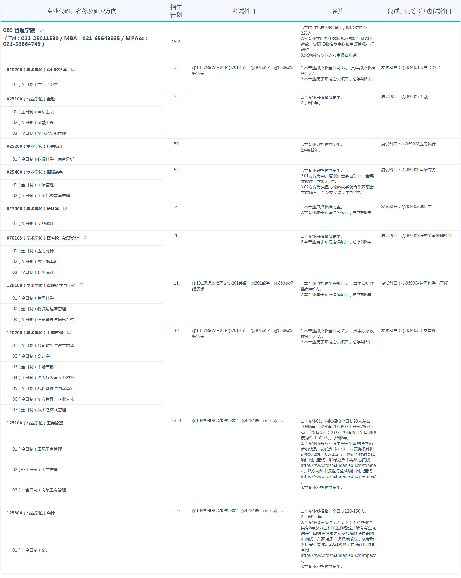 复旦大学考研辅导班:2021复旦大学管理学院考研招生目录、招生人数、考试科目