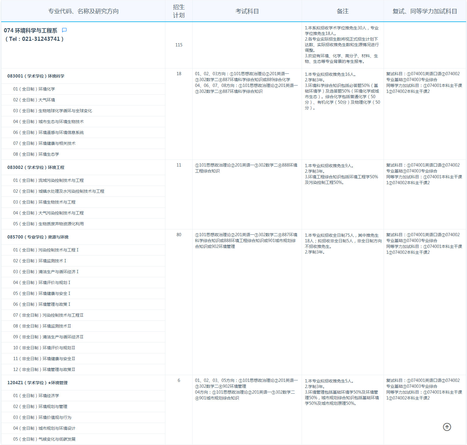 复旦大学考研辅导班:2021复旦大学环境科学与工程系考研招生目录、招生人数、考试科目