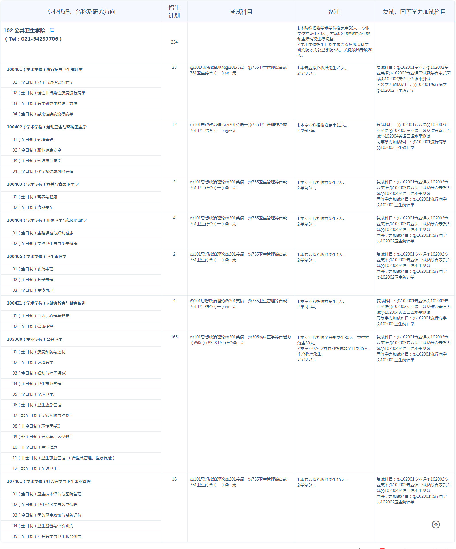 复旦大学考研辅导班:2021复旦大学公共卫生学院考研招生目录、招生人数、考试科目