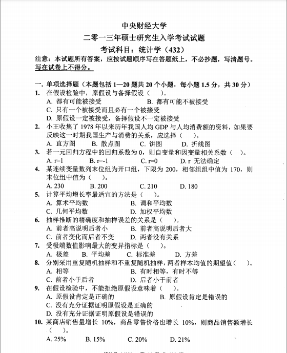 2013年中央财经大学432统计学考研真题